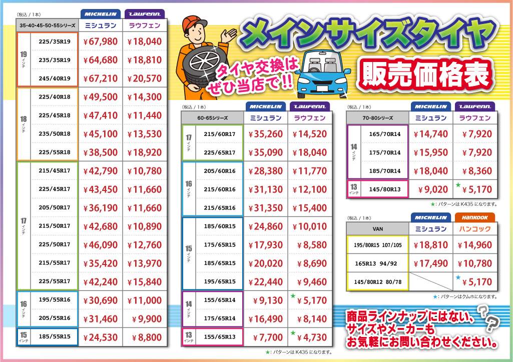 ・タイヤ交換の価格も納得のいく感じで、スタッフの対応も良かったです。